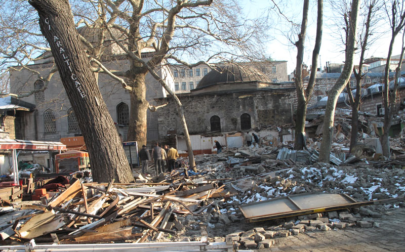 Tam bu çalışmalar esnasında tarihi Eminönü meydanındaki ağaçlar Fatih