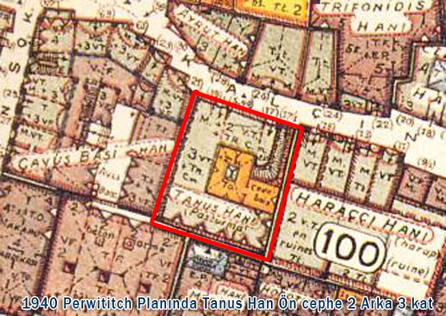 1940 tarihli sigorta planlarında ön cephesi 2 katlı olduğunu gördüğümüz tarihi tescilli Tanus hanAşağıda görüldüğü gibi horosan, kemerl örme taş, ÜZERİNE ÇIKLAN KAÇAK KATLAR MODERN BETONARME KATLAR...