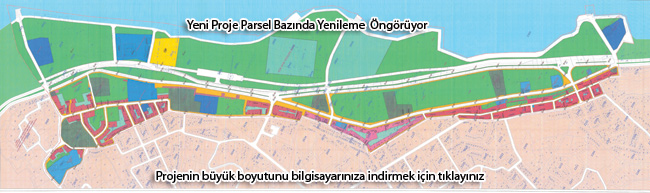 Dikkat: Daha önce ilan edilen projenin 60 Ada üzerinde uygulaması vardı, yolun üstünde halen ikamet edilen 19 ada varken Sahil kesimindeki 41 adet ada projeye dahil edilmiş, arkadaki 19 ada üzerine yapılacak turistik otel, residans yapılanmasının parçası haline getirilmişti.
