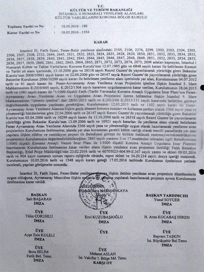 FATİH BELEDİYESİ İLE FENER, BALAT, AYVANSARAY MAHALLELERİ MÜLK SAHİPLERİ VE KİRACILARI ARASINDAKİ YENİLEME/DÖNÜŞÜM PROJE MÜCADELESİ MÜLK SAHİPLERİNİN İSTEDİĞİ GİBİ OLDU