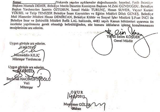 *İŞTE İÇİŞLERİ BAKANI MUAMMER GÜLER'İN HAKLARINDA YARGILAMA İZNİ VERMEDİĞİ FATİH BELEDİYESİ ÜST DÜZEY YÖNETİCİLERİ