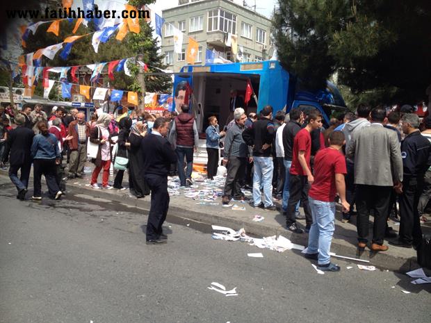 Bir anda AKP standı darmadağın oldu, bu arada sopalar ve atılan soda şişelerinden her iki taraftan da hafif yaralananlar oldu.