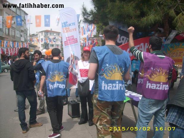 Saat;14:15 civarı yanımızda stant açan Birleşik Haziran Hareketi Fatih üyelerinin attıkları sloganları hazmedemeyen AKP liler BHH Fatih üyelerine saldırdılar.
