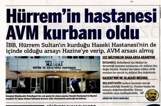 Taraf’ın ulaştığı belgelere göre, İstanbul Büyükşehir Belediyesi, Hürrem Sultan tarafından yaptırılan ve halen de Haseki Hastanesi olarak kullanılan arsaları ve Bağcılar Hastanesi’nin arsalarını, Hazine’ye dolayısıyla Maliye Bakanlığı Milli Emlak Genel Müdürlüğü’ne devretti. Bunun karşılığında ise İstanbul’un değişik semtlerinde bulunan, konut, alışveriş merkezi gibi yapılaşmaya uygun Hazine arsaları belediyeye verildi.