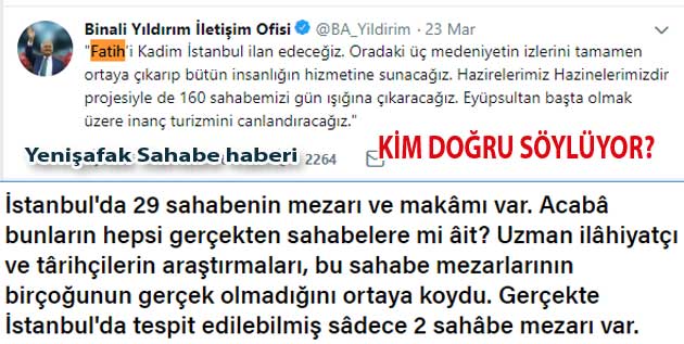 İBB Başkan adayı Binali Yıldırım da her mahalleye bir sahabi türbesi sözü geldi ama İstanbulda zaten 29 sahabi kabri, yada makamı var BU 160 SAYISI NEREDEN ÇIKTI BİLEN VAR MI?