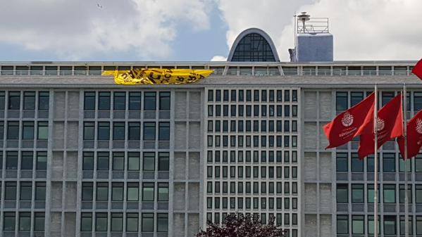 İstanbul’un doğasını yok eden Kuzey ormanları projelerine dur demek için “Kuzey Ormanları Savunması” platformu İstanbul Büyükşehir Başkanlığı merkez binası üzerine protesto pankartı astı.