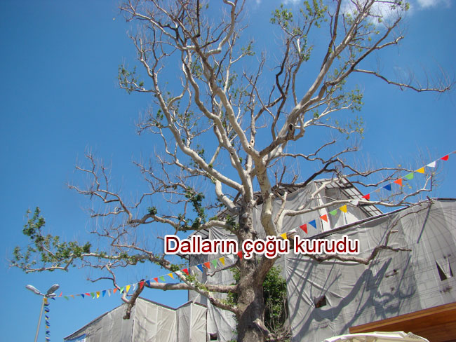 ve yerine dikilen küçük fidanlar şimdi kurutulan ortadaki büyük dev çınar sol tarafta
