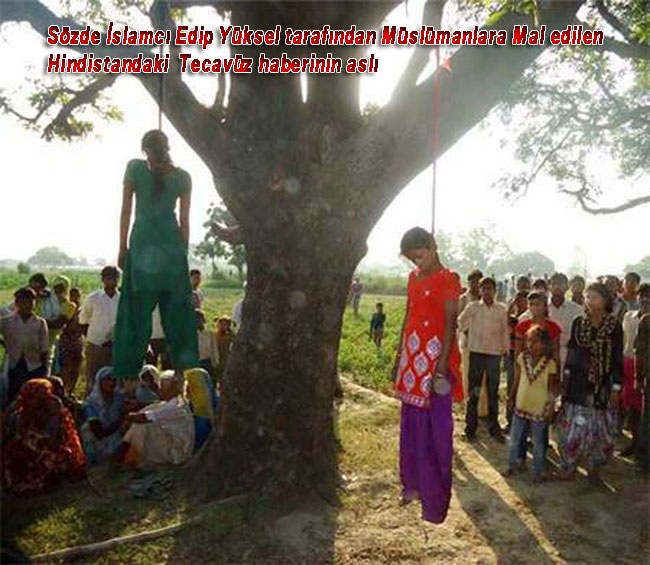 Sosyal paylaşım sitesinde yayınlanan iki kız çocuğunun tecavüz edilerek ağaca asılması haberindeki fotoğrafları paylaşanlar, bu olayın islam şeriatı gereği hindistanda uygulandığı şeklinde paylaştılar.