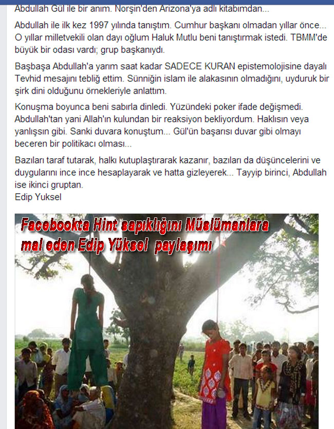 14-15 yaşlarındaki 2 kız kardeşin tecavüz edilerek öldürülmesini, İslam şeriatı haberi gibi paylaşanların arasında, Sünni İslam sapıklıktır diyen,  Sözde İslamcı yazar edip Yüksel’de var.