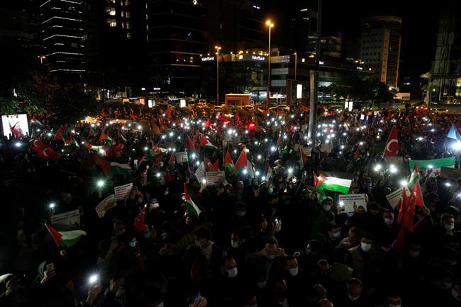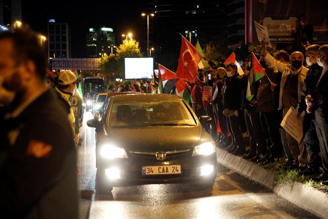 İstanbul’daki İsrail Konsolosluğu önündeki ikinci eylemde Türkiye, Filistin ve Doğu Türkistan bayrakları taşıyan protestocular, "Mavi Marmara onurumuzdur", "Katil İsrail Filistin'den defol", "Mescid-i Aksa onurumuzdur" sloganları attı.