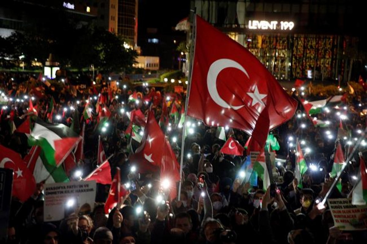 İHH İnsani Yardım Vakfı Genel Başkanı Bülent Yıldırım, burada protestoculara hitap etti. Cumhurbaşkanı Recep Tayyip Erdoğan'ın "One minute" tepkisini ve İsrail'in Mavi Marmara baskınını hatırlatan Yıldırım, "6 Gün Savaşları'nda Türkiye halkının bir kısmı İsrail'in yanındaydı. Oyuna gelmiştik. Ama şimdi Türkiye halkının bütün kesimleri Filistin'in yanında. Bunun sebebi de yapılan bu saldırılardır. Halkımız uyandı, bilinçlendi. Aslan uyandı. Netanyahu duy bu sesi" diye konuştu. Sabırla, disiplinle hareket edeceklerini dile getiren Yıldırım, eylemlerinin durumunu Filistin'deki olaylara göre şekillendireceklerini söyledi. Yıldırım, “Siyonistlerin sabah 9-11 saatlerinde Mescid-i Aksa'ya saldırmaya niyetlendiğini" anlatarak, konuşmasını şöyle sürdürdü: