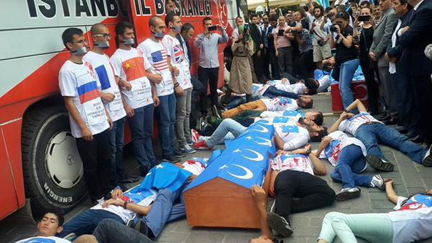 İstanbul Ülküocağı il başkanlığı tarafından düzenlenen Çin zulmünü protesto yürüyüşü 04 Temmuz 2015 Cumartesi günü Beyazıt meydanında başladı.