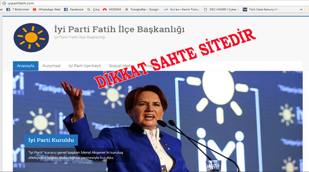 Yurt dışından yayın yapan Faili meçhul şahısların oluşturduğu bu siteye girerek bilgi belge vermeyin, İyi parti Fatih ilçesi resmi web sitesi www.fatihiyiparti.com adresinde yayın hayatına başlayacaktır.