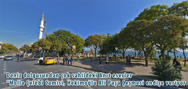 Deniz dolgusundan çok sahildeki Anıt eserler "Molla Çelebi Camisi, Hekimoğlu Ali Paşa Çeşmesi, Çizmeci Başı Mahmut Ağa Kabri, Koca Yusuf Paşa Çeşmesi ve sebili, Şeyhülislam Esad Çeşmesi ve Hadika Taşı (Kabataş kitabesi) bulunuyor.
