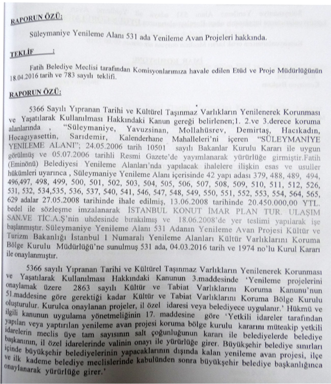 Son aylarda Fatih belediye meclisine getirilen birçok teklif İmar Tadilat tekliflerinden oluşuyor.