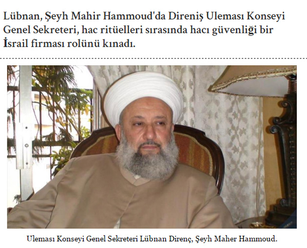Lübnan, Şeyh Mahir Hammoud'da Direniş Uleması Konseyi Genel Sekreteri, hac ritüelleri sırasında hacı güvenliğinin bir İsrail firmasına verilmesini kınadı.