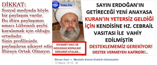DİP NOT: Sosyal medyada sıkça paylaşılan bir fotoğrafın aslını ararken bu habere rastladım, Sanıyorum yukarıdaki kınama haberi nedeniyle rahatsız olmuş islam düşmanları Lübnanlı duyarlı şeyhimizi karalamak için böyle bir iftira kampanyasını Müslümanlar üzerinden yapıyorlar.