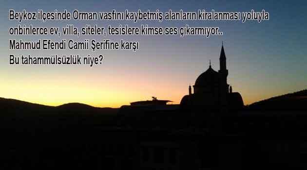 Beykoz çavuşbaşında ikamet eden Mahmut Ustaosmanoğlu Hoca efendinin evinin yanına Orman müdürlüğünden ihale ile 49 yıllığına kiralanmış arazide Mesire-Dinleme tesisi" ruhsatı ile inşa edilen (Mahmud Efendi Camii Şerifi ve Medreseleri) 2016 yılında hiçbir yargı kararı olmadan, Valilik tasarrufu ile Medrese bölümü yıkılmış, Cami inşaatı durdurulmuştu.)