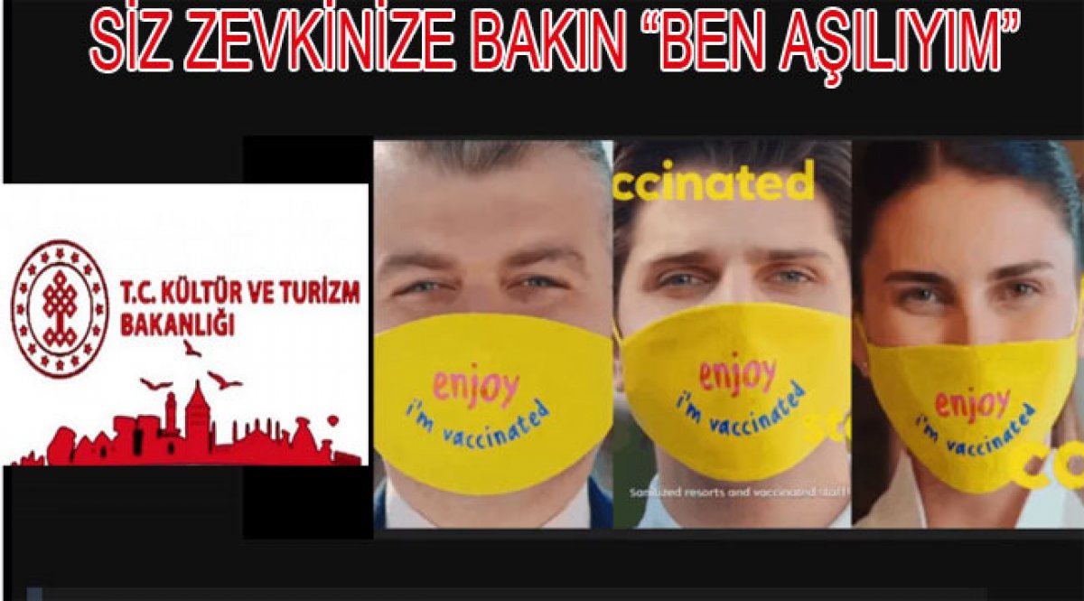 Dışişleri Bakanı Mevlüt Çavuşoğlu'nun "Turistin görebileceği herkesi Mayıs sonuna kadar aşılayacağız" açıklamasının ardından Kültür ve Turizm Bakanlığı'ndan, turistlere yönelik "Keyfine bak! Aşılıyım" yazılı reklam videosu geldi.