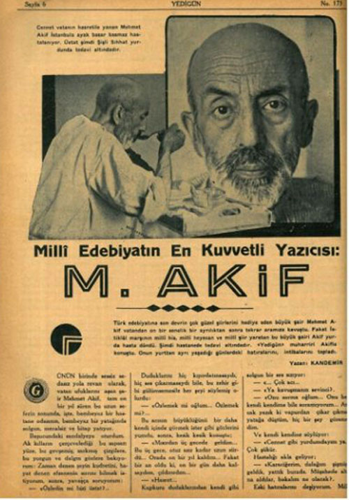 27 Aralık 1936 yılında vatan sevgisi, güçlü millet olma ve bu yolda mücadeleyle geçen 63 yıllık ömrünü noktalayan Mehmet Akif´e, ne yazık ki Cumhuriyet tarihi boyunca devlet hak ettiği değeri veremedi.