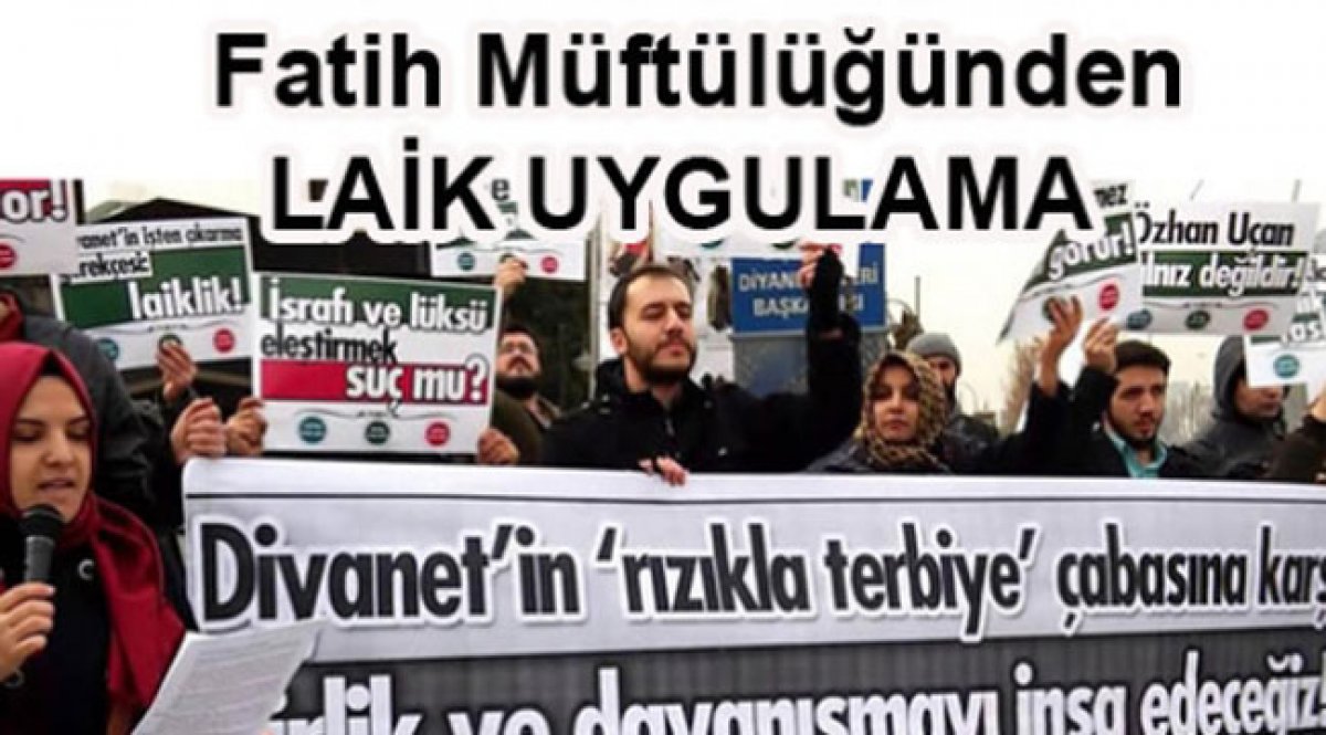 Fatih Müftülüğü önünde de, İlke-Sen İstanbul şubesi üyeleri tarafından bir protesto gösterisi düzenlendi.