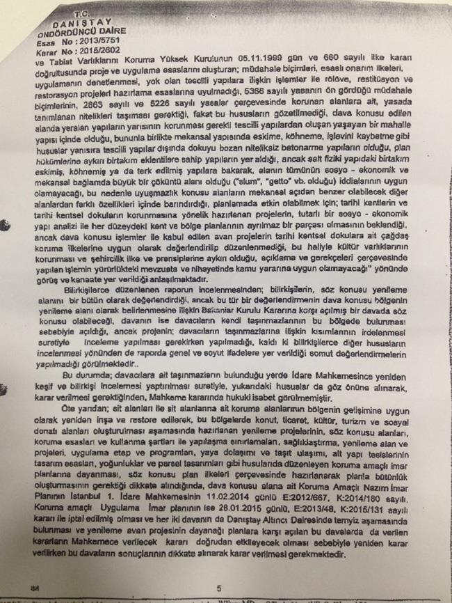 mahkemenin itirazını 5. sayfada detaylı okuyabilirsiniz, Şöyleki Febayder ve TMMO avukatı projeden etkilenen 5 vatandaş adına açtığı dava savunmasında konuyu bütün proje alanına yayması, Eleştirileri ve Kamu yararını projenin tamamı hakkında beyan etmesi nedeniyle Savunmayı hukuksuz bulmuş ve 5. idare mahkemesinin kararını bozmuştur.