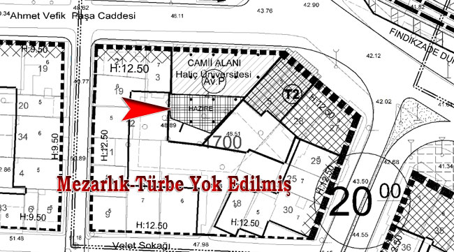 Nuridede Camii Haziresindeki türbe ve kabirler yok edilmiş
