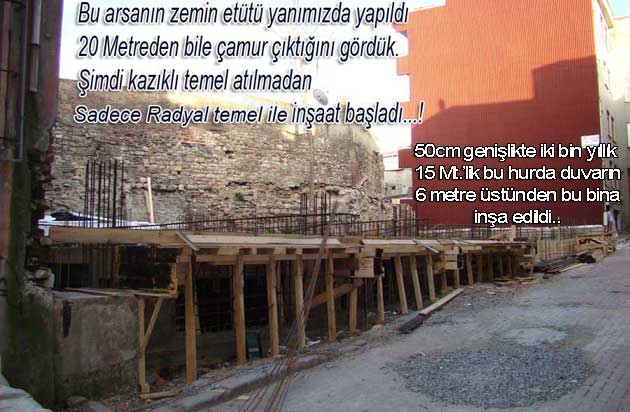 Buradaki zemin etüdünde 19 mt. gevşek zemin çıkmıştı, Sonra sokakta sondaj yapıldı, Burada da aynı netiec alındı. Ama bina genede yapıldı..