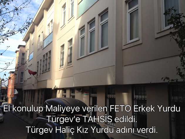 Henüz gizli tutulan bu işlem neticesinde yurt tadilata sokularak adı "TÜRGEV HALİÇ KIZ YURDU" olarak değiştirilerek hizmete hazır hale getirildi. Yurda Tabela bile asmadılar.