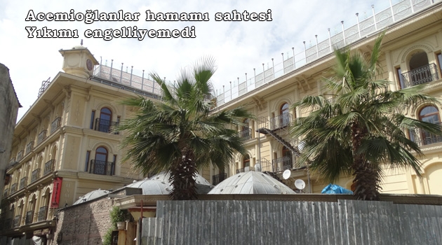İstanbul Büyükşehir Belediyesi’ne (İBB) yaklaşık 200 metre mesafedeki Şehzadebaşı’nda “tarihi hamam alanı” olarak kayıtlı arsada kaçak olarak 2004 yılında otel inşaatı başlatıldı. Fam Otelcilik firmasına ait arazinin bir bölümünde 17. yüzyıldan kalma 1. derecede tarihi eser olan Acemoğlu Hamamı bulunuyordu.