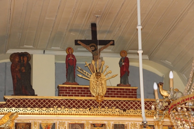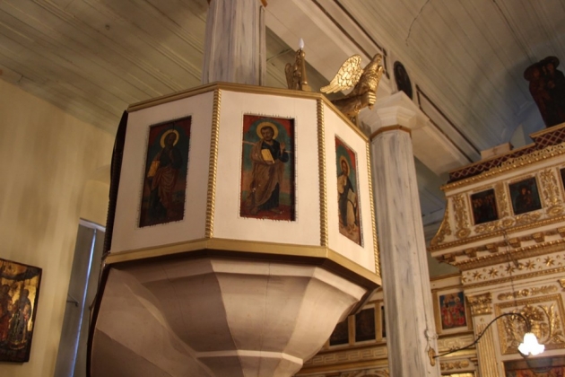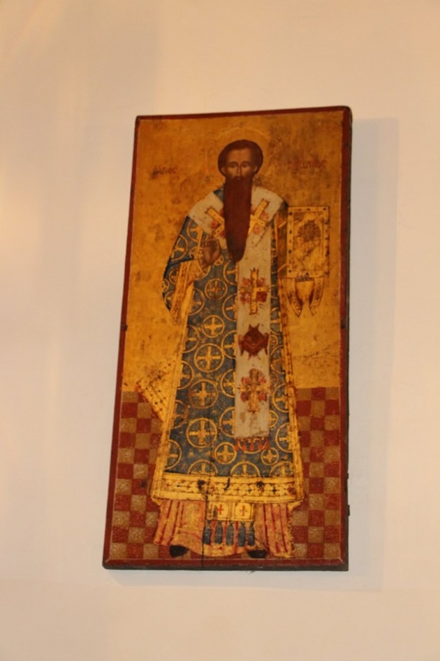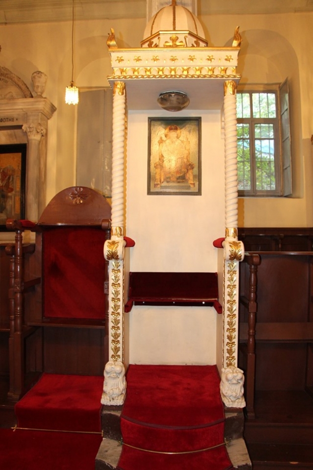 Girişinde, Bizans'ın simgesi olan çift başlı bir kartal firizi bulunur. Kartal başlarından biri Doğu Roma'yı diğeri ise Batı Roma'yı simgelemektedir. Bu kartalı Patrikhane yapısında da görmek mümkündür.