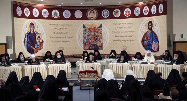 Ortodoks papazlar Kutsal ve Büyük Konseyi Ekümenik Patrik Bartholomeos'u karşıladı diğer kiliselerin Primatlar Konseyi yorumladı.