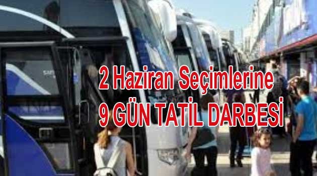2 haziran seçimleri Bayram tatiline denk getirildi, tatile çıkan vatandaşların Chp seçmeni olduğunu gören iktidar Çok cazip tatil teklifleri ile bazı seçmenlerin 2 Haziranda tatile gitmesi için çılgın teklifler hazırlıyor.