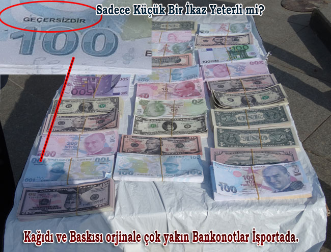 Eğer şaka için kullanılacaksa, Bütün banknotların bir liradan fazla olmaması zorunluğu getirilsin. İşporta tezgahlarında 500 EURO, 100 Dolar, 200 ve 100 TL'lik sahte Banknotlar tanesi On kuruştan satılıyor.