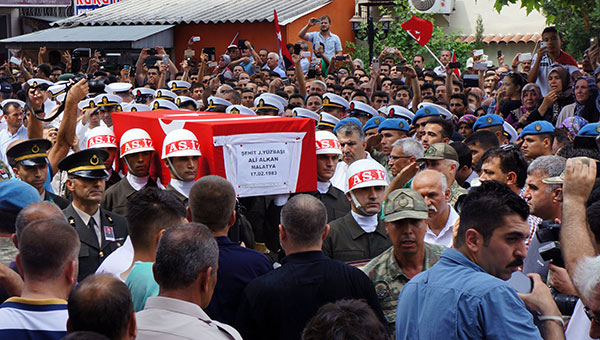 Şehid Yüzbaşı Ali Alkan, memleketi Osmaniye'de 15 bin kişinin katıldığı törenle son yolculuğuna uğurlandı. Törende Şehid aileleriyle Akp'liler arasında arbede yaşandı