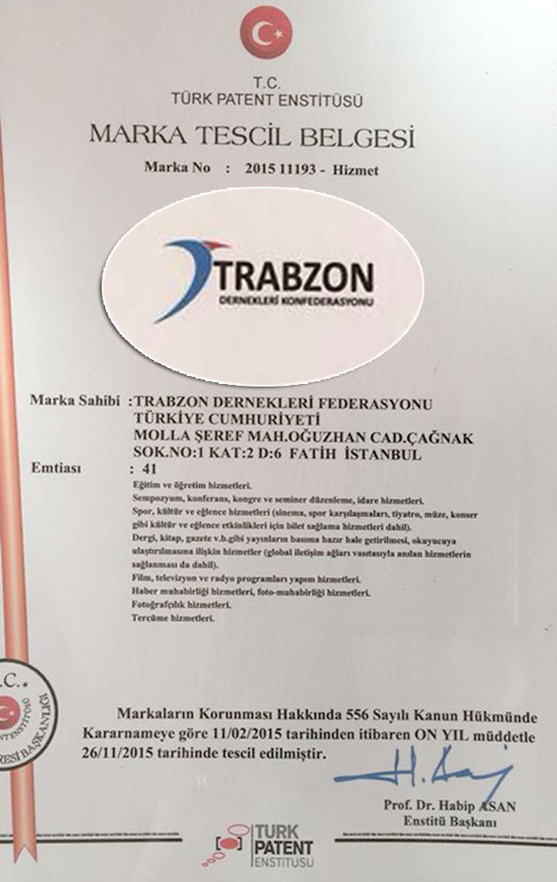 TDF Başkanı Sayın Mustafa Demir, TSE'den alınmış bir marka tescil belgesi ile Trabzonluya hizmet etmek iddiası ile ortaya çıkmış yeni bir oluşumu gayri yasal ilan etmesinin şaşkınlığını yaşıyoruz .