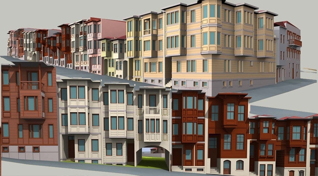 Devletin arşivlerinde olduğu gibi internet ortamında da görüleceği üzere 8 mahallede projelendirilen yeni yapılaşmanın çoğunluğu maalesef betonarme Proje alanını 63 yıldır iyi bilen biri olarak diyorum ki; buradaki konutların %70'nı ahşap ve %20'si kagir evlerden oluşuyordu.