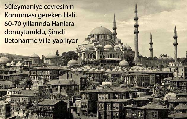 Bu tür bir uygulama hem SİT hukukuna hem UNESCO'nun Dünya Kültür Mirası yenileme normlarına uygun olmadığı aşikar , Kiptaş ve Fatih belediyesi böyle bir izni eski mülk sahiplerine vermemişti, Açık seçik Rant projesi olan Süleymaniyede 8 mahallenin Sulukule örneğinde gördüğümüz tarih kültür tahribatına yeni İBB yönetiminin ortak olmayacağını sanıyoruz.
