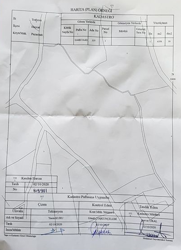 Kesilecek ağaç yada ağaçların olduğu parselin tapusu ile kadastro müdürlüğüne müracaat edip78 lira bilmem nekadar kuruş parayı bankaya yatırıyorsunuz . Harita plan örneğini alıyorsunuz .