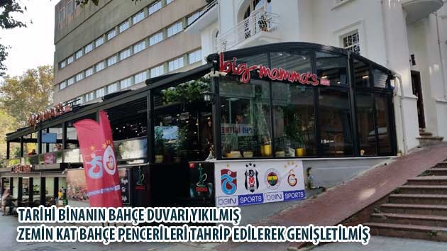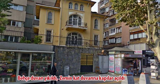 Haseki Sultan mah. 1789 Ada 9 parselde bulunan tarihi bina bahçe duvarı ve binanın zemin kat duvarları yıkılarak Cafeye dönüştürülmüş.