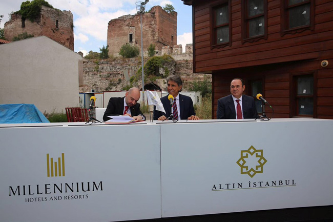 Konuşmaların ardından, Millennium & Copthorne Hotel grubu adına Francais Kassab, Altın İstanbul A.Ş Yönetim Kurulu Başkanı Ertan Şener sözleşmeyi imzalarken , Fatih Belediye Başkanı Mustafa Demir de imza törenine tanıklık etti.