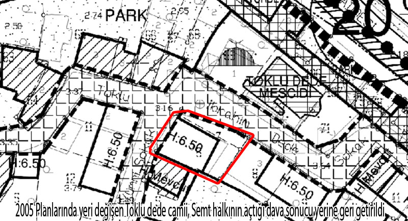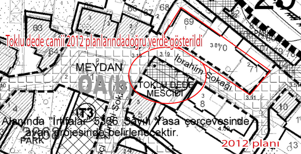 2012 planlarında yok edilen, yeri değişen, planlardan adı silinen yüzlerce cami medrese var, Bu uygulamada görüldüğü gibi açılan bir dava sonucu Toklu dede mescidi orijinal yerine çekildi.