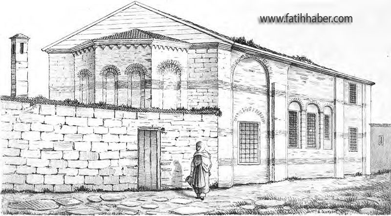 Cami AG Paspates 'dan, 1877 yılı bir çizim kuzeydoğu bakıldığında Bizans topografik çalışmalar