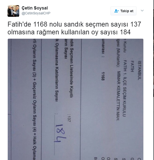 Böyle bir durumda YSK oyların geçerli olduğunu açıklamasaydı bende bir şüphe olmayacaktı, Fakat YSK nın tuhaf bir şekilde bu durumu aklaması kabul edilebilir değil. Zaten katılımın yoğunluğuda bizce şaibeli.Muhalefet acilen bir kampanya başlatmalı, Oy kullanmayan vatandaşlar tespit edilip ilgili tutanaklarla karşılaştırılmalı, eğer bu şekilde çok oy kullanılmış ise ortaya çıkarılmalı
