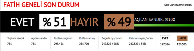 Fatih: Yüzde 51.38 Evet