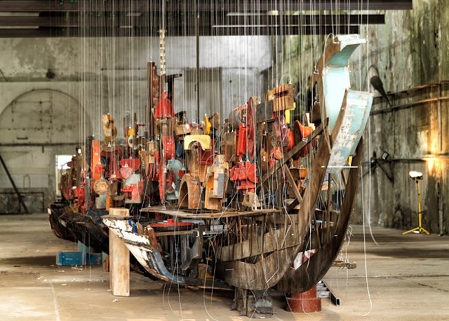 Ama olamadı, zira kendi imzaladıkları gizlilik sözleşmesi, tüm bu süreçlerin kamuya kapalı yürütülmesinin garantörü. Bu olamadığı için de bir sanat yerleştirmesi yapmayı seçmişler, hatta Haliç'te kurup Venedik'e taşıdıkları, bienal bittikten sonra geri İstanbul'a götürerek kendi Haliç projelerinin içinde sergilemeyi planladıkları bir yerleştirme.