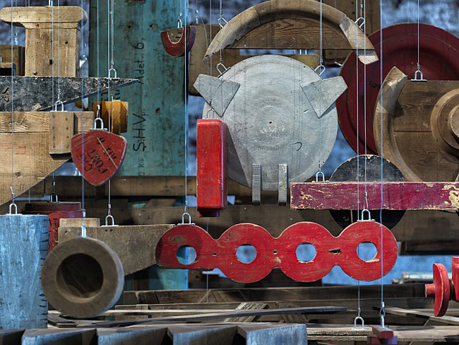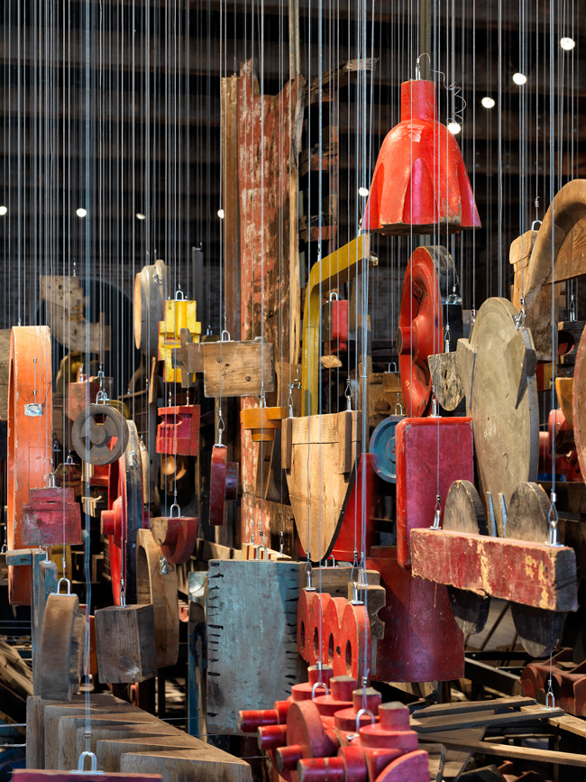 Bu bağlam kaymaları içinde ortaya çıkan iş de bir “şekil” olmanın ötesine geçemiyor. Çok güzel bir şekil olduğuna şüphe yok, birkaç onyıldır moda olmuş olan yıkıntı estetiğinin iyi örneklerinden biri. Karşımızdaki baştarda, bu yıkıntı estetiği meselesini bir adım öteye taşıyarak sakil duran parçaları güzel renklere boyamış, onları bir araya getirmektense tavana asarak olası çirkin bağlantı çözümlerinden kendini kurtarmış süslü bir nesne. Bu açıdan biraz İstanbul’a da benzemiyor değil.