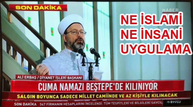 Bu gün Cumhurbaşkanlığı Beştepe yerleşkesi içindeki Millet camisinde Cuma adı altında bir namaz irat edildi. Corona pandemisi nedeniyle yurt genelinde vakit namazları ve Cuma namazlarında cemaat halinde ibadet etmek yasaklandı. Diyanet başkanının da bu yasaklara uymak zorunda olması gerekirken Beştepede özel cuma namazı kılınması tepkilere neden oldu, Bu konuda ayrı bir haber yapacağız, Buraya köşe yazarımız Av. Turgut Yenilmezin düşüncelerini aktarıyoruz