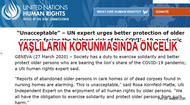 “İhmal Kabul edilemez” - BM uzmanı çok yüksek COVID-19 salgını riski taşıyan yaşlıların daha iyi korunmasını istiyor. Birleşmiş Milletler Bağımsız Uzmanı Rosa Kornfeld-Matte Gerek bakım evlerinde , Huzur evlerinde, Yalınız yaşayan yaşlıların ihmal edilmemesi için bir genelge yayınladı.