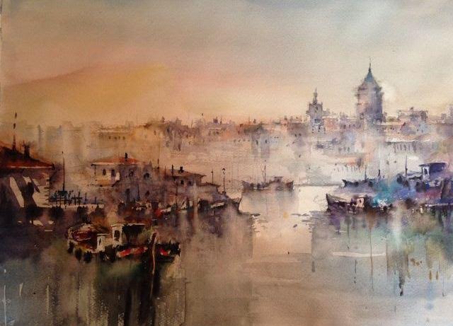 Ustanın büyük soyut resimlerinin, kullandığı ışık ve malzemelerle beraber suluboyanın da akrilikle desteklenmesiyle boyut ve derinlik kazandığı görülüyor. Sanatseverler, sanatçının eserlerinin, hayatın içindeki hız ve devinimin baş döndürücülüğüyle İstanbul’un sakin ve tarihi köşelerinin birlikte harmanlanmasıyla oluşan muhteşem derinliğinde kayboluyor.